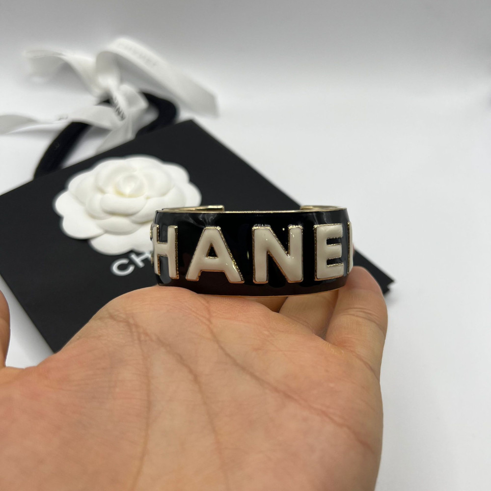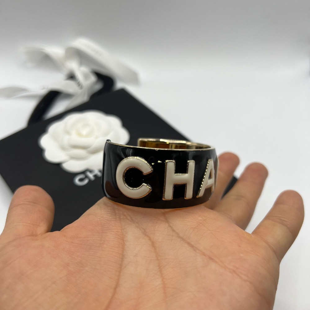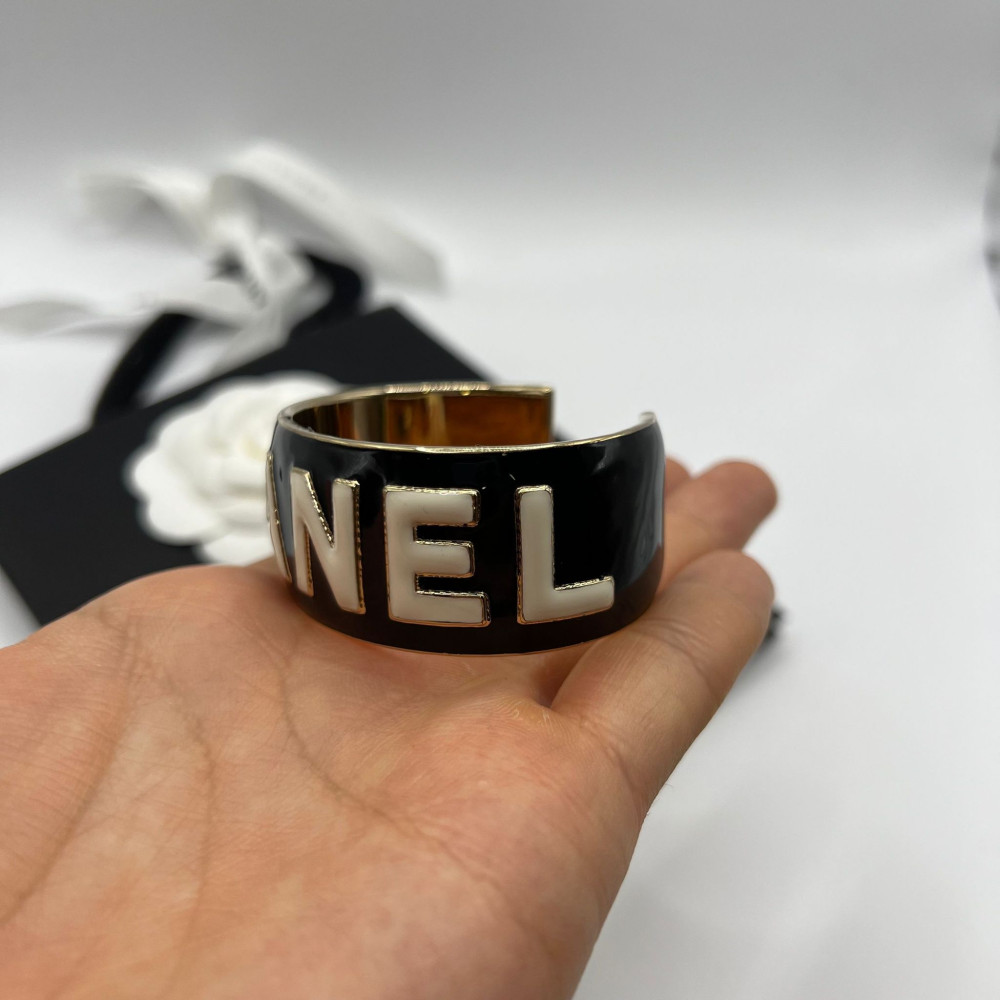 샤넬 에나멜 로고 골드/블랙 팔찌 AB8673