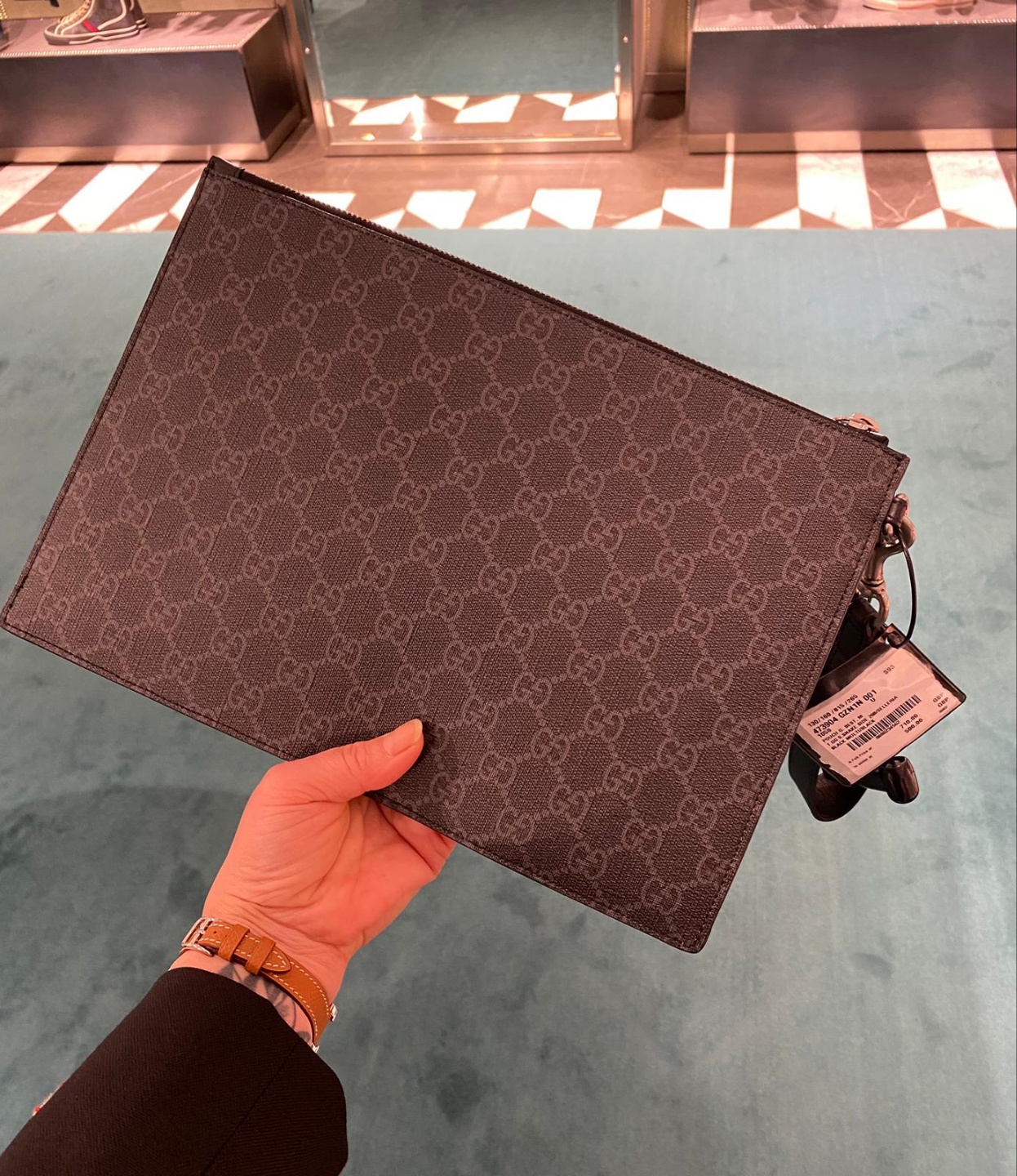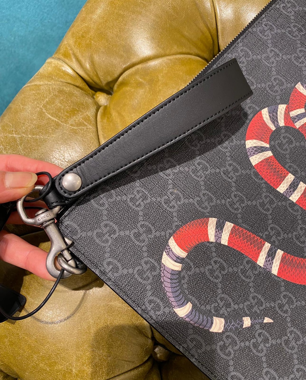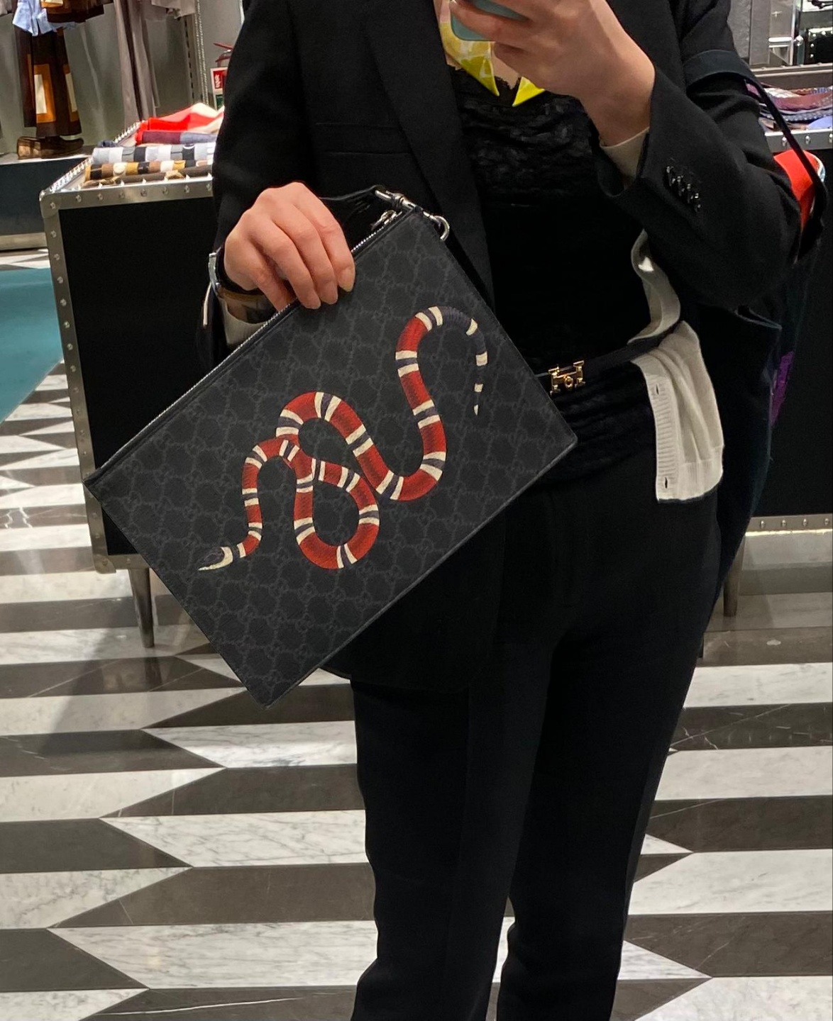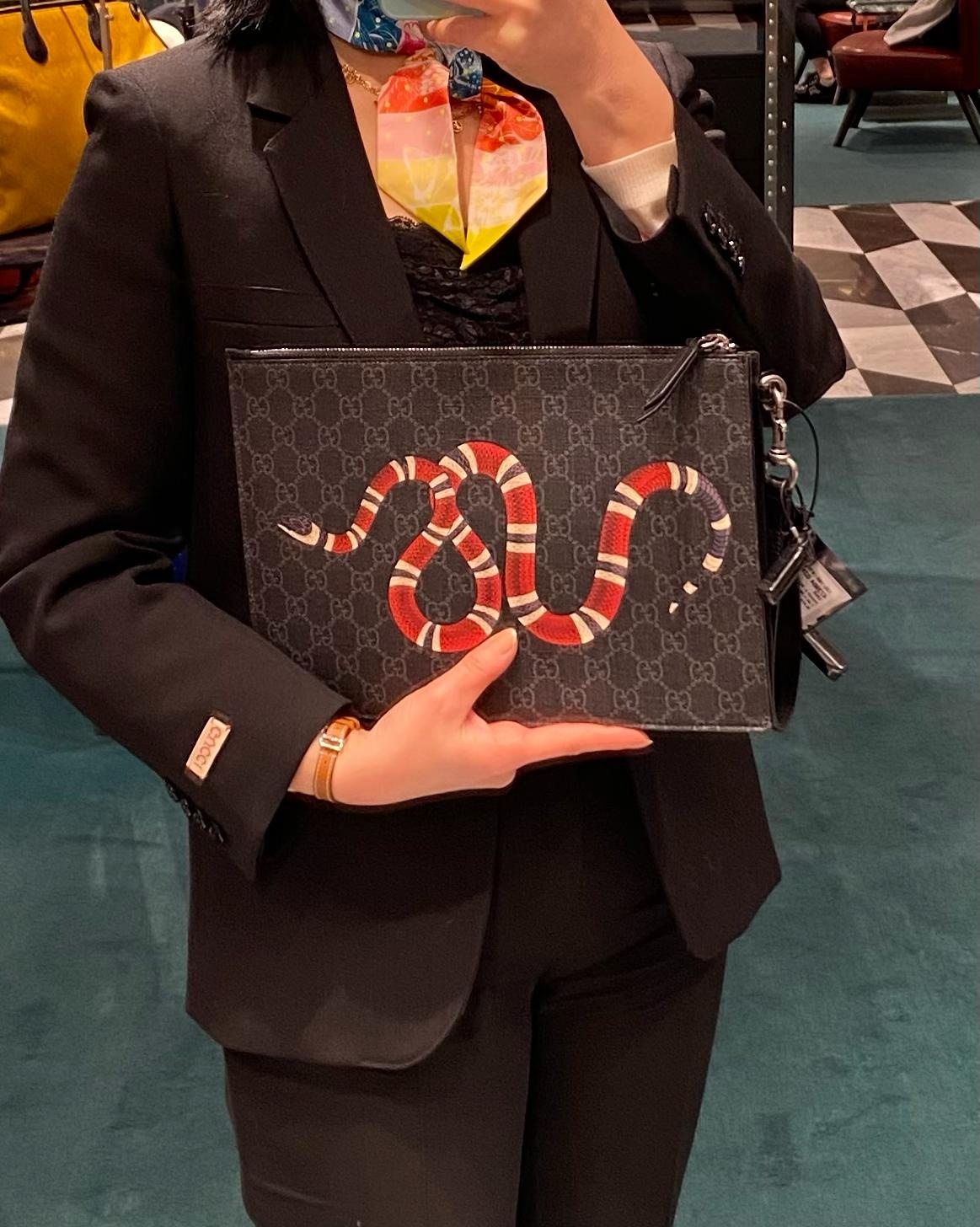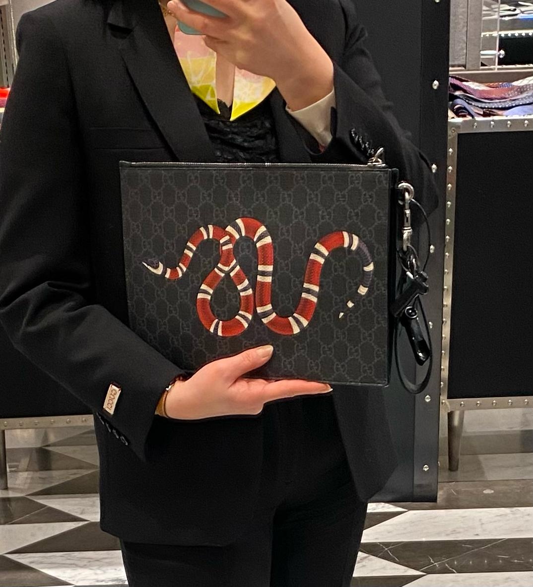 구찌 슈프림 스네이크 프린팅 남성 클러치 블랙