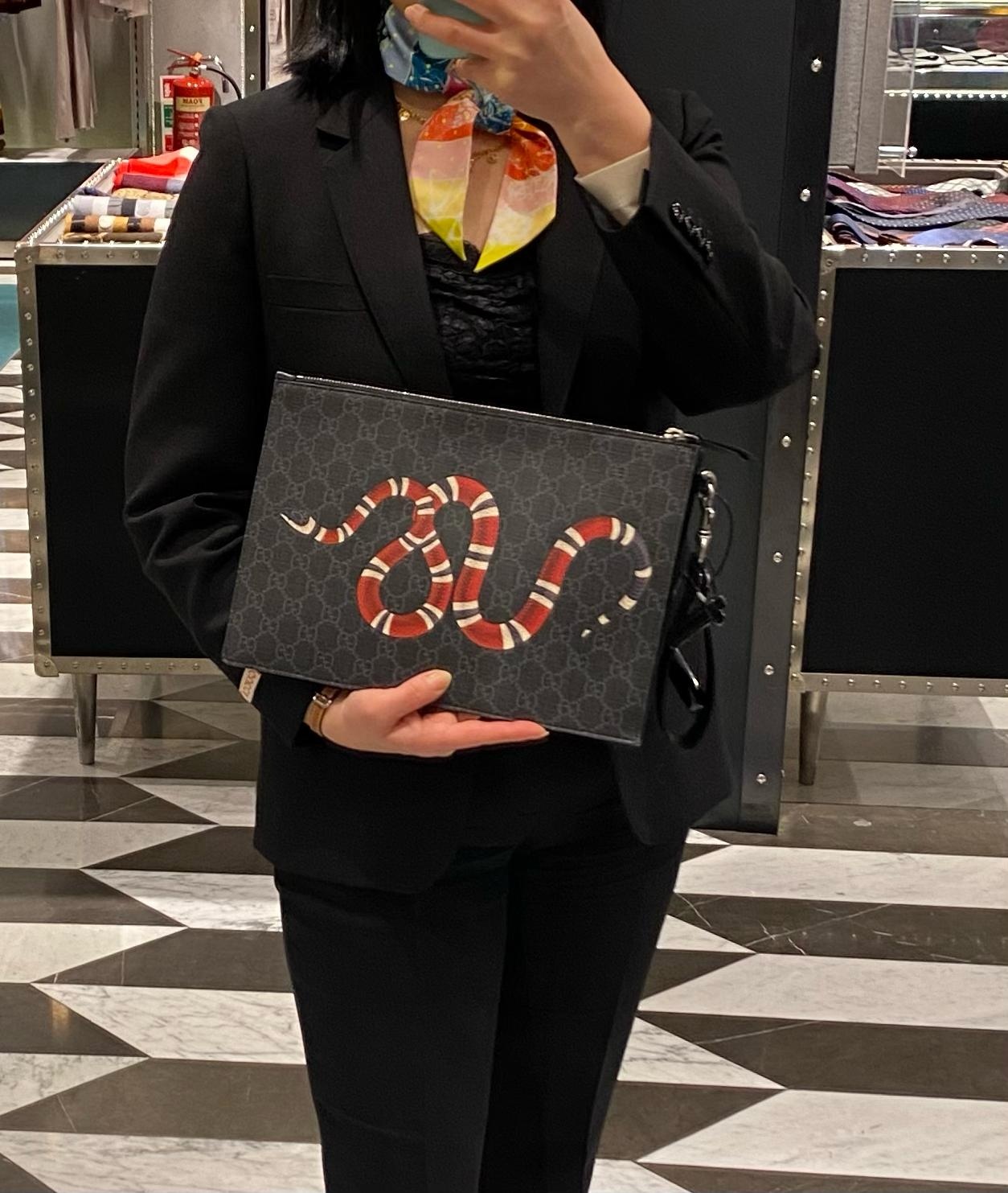 구찌 슈프림 스네이크 프린팅 남성 클러치 블랙 473904